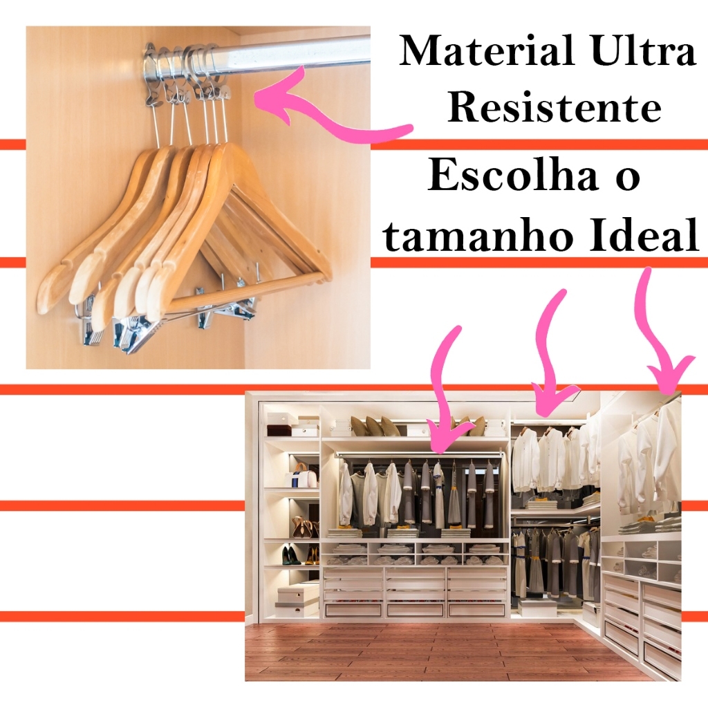 KIT Cabideiro Oval Cromado COMPLETO – Solução robusta e elegante para Guarda-Roupas, Closets e Armários. ✨ Destaques Essenciais Design Oval Reforçado: O formato oblongo suporta mais peso que modelos redondos e evita deformações (ideal para peças pesadas). Acabamento Premium: Metal Cromado de Alto Brilho. Alta durabilidade e resistência à oxidação/ferrugem. Kit Completo: Inclui Tubo Oval, 2 Suportes Específicos e Parafusos para instalação imediata. Encaixe Perfeito: Disponível em Medidas Padrão ou na opção Sob Medida para seu projeto. Instalação: Fixação lateral rápida em painéis de madeira.