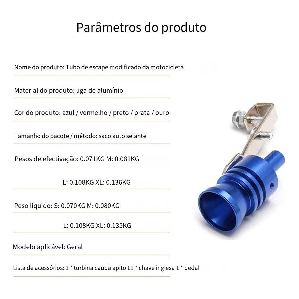 Tubo De Escape Dispositivo Reajuste Turbo Turbina Simulador Pronta Entrega! Olá Prezado Cliente o modelo padrão enviado por este link é Conforme mostrado na primeira imagem Cor Vermelho Preto Tamanho XL Se você precisar de outros estilos entre em contato com nosso atendimento ao cliente sempre agradecemos suas perguntas Características Depois de instalar este apito de som turbo a pressão que sai do escapamento fará com que seu veículo soe como um veículo turbo com o sistema turbo ou válvulas de escape Feito de alumínio de alta qualidade leve e durável Fácil de instalar no tubo de escape do carro É melhor confirmar o diâmetro interno da porta de escape antes de comprar Se o diâmetro do apito mais 1CM for maior ou igual ao diâmetro interno da porta de escape ele não será instalado O apito de som turbo não é adequado para tubos de escape extremamente curvos Certifiquese de que o tubo de escape seja grande e longo o suficiente para conter este apito de som turbo Especificações: Material: liga de alumínio Cor: prata, vermelho, azul, preto, dourado Tamanho: XL (12 cm/4,72 de comprimento)