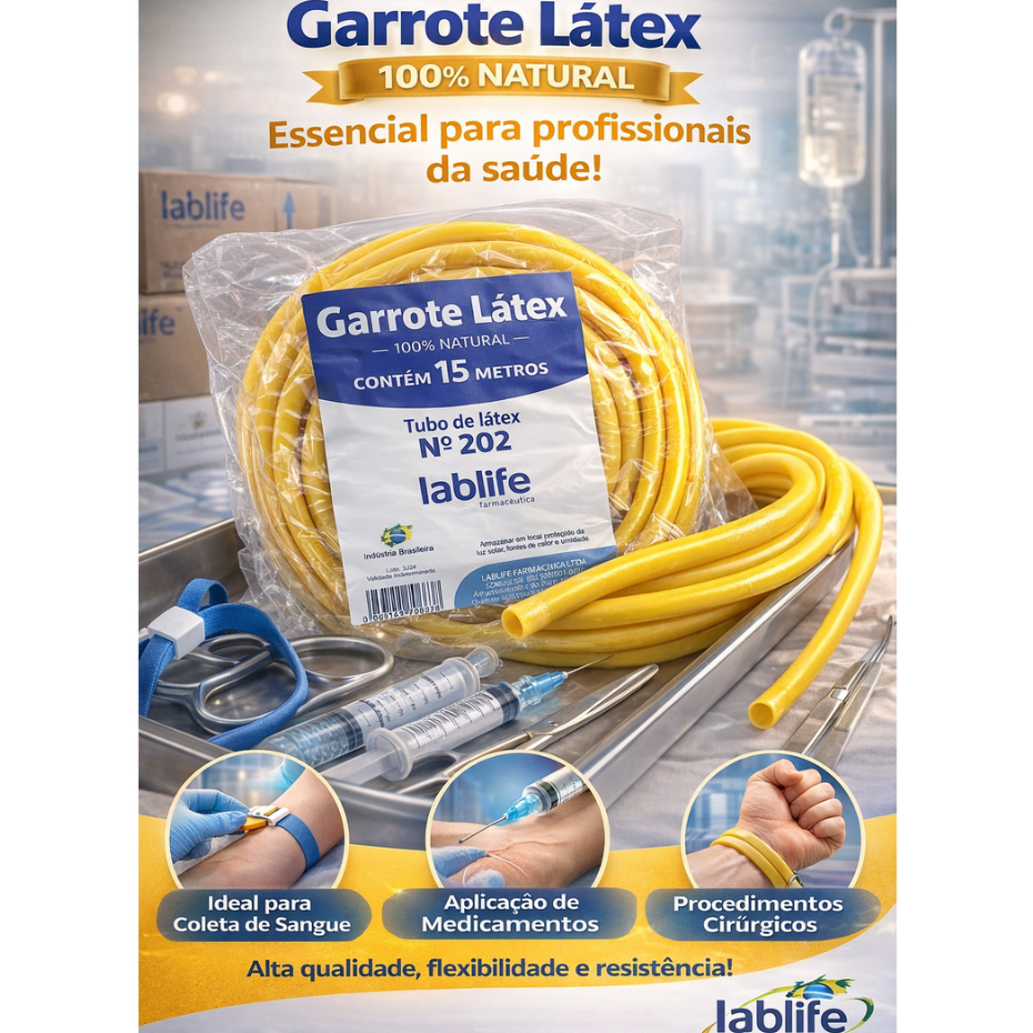 Tubo Látex Garrote 202 Profissional 15 Metros Hospitalar Flexível Resistente Enfermagem Laboratório