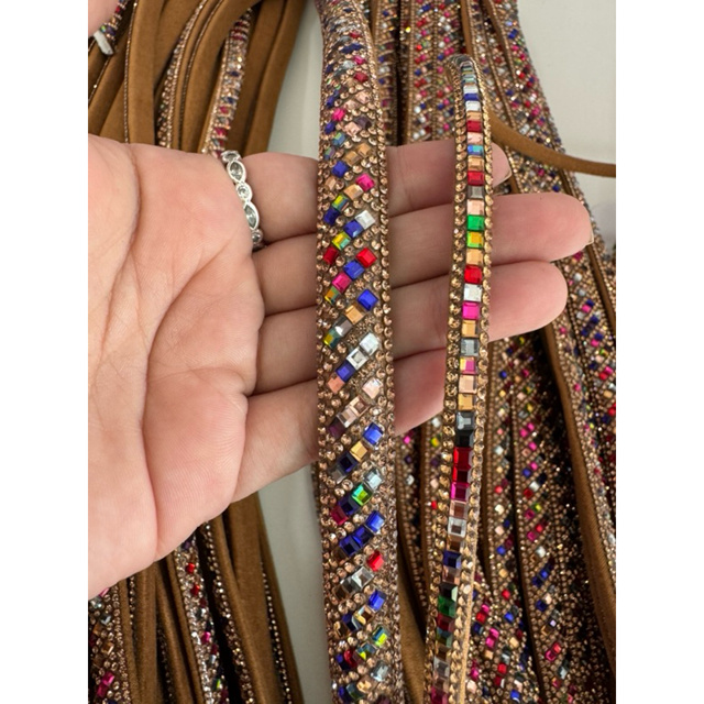 | Cordão tubo (cadarço) strass Slim Cristal/Grafite/Boreal/Dourado/Ro... | R$ 14,00 | — | 4.9/5 | 64 |