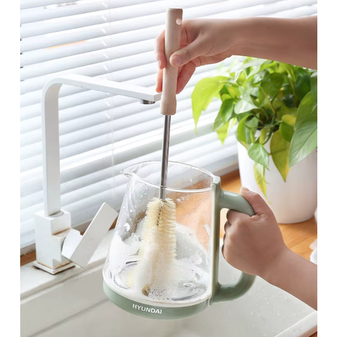 1 limpador de escovas para garrafas de água com cabo de madeira longo. Escova de limpeza de garrafas de água para copos, chaleiras, vasos, garrafas esportivas, frascos. Remove com eficácia manchas difíceis e áreas de difícil acesso. Alças de madeira selecionadas. Tubo de aço inoxidável. Cerdas de nylon bem enroladas. Durável e não é fácil de quebrar. Aderência confortável sem escorregar. Uma cabeça de escova curva foi especialmente projetada para alcançar todos os cantos das garrafas. Conveniência de guardar com orifício para pendurar. Medidas: 39cm de comprimento e 8cm de largura.