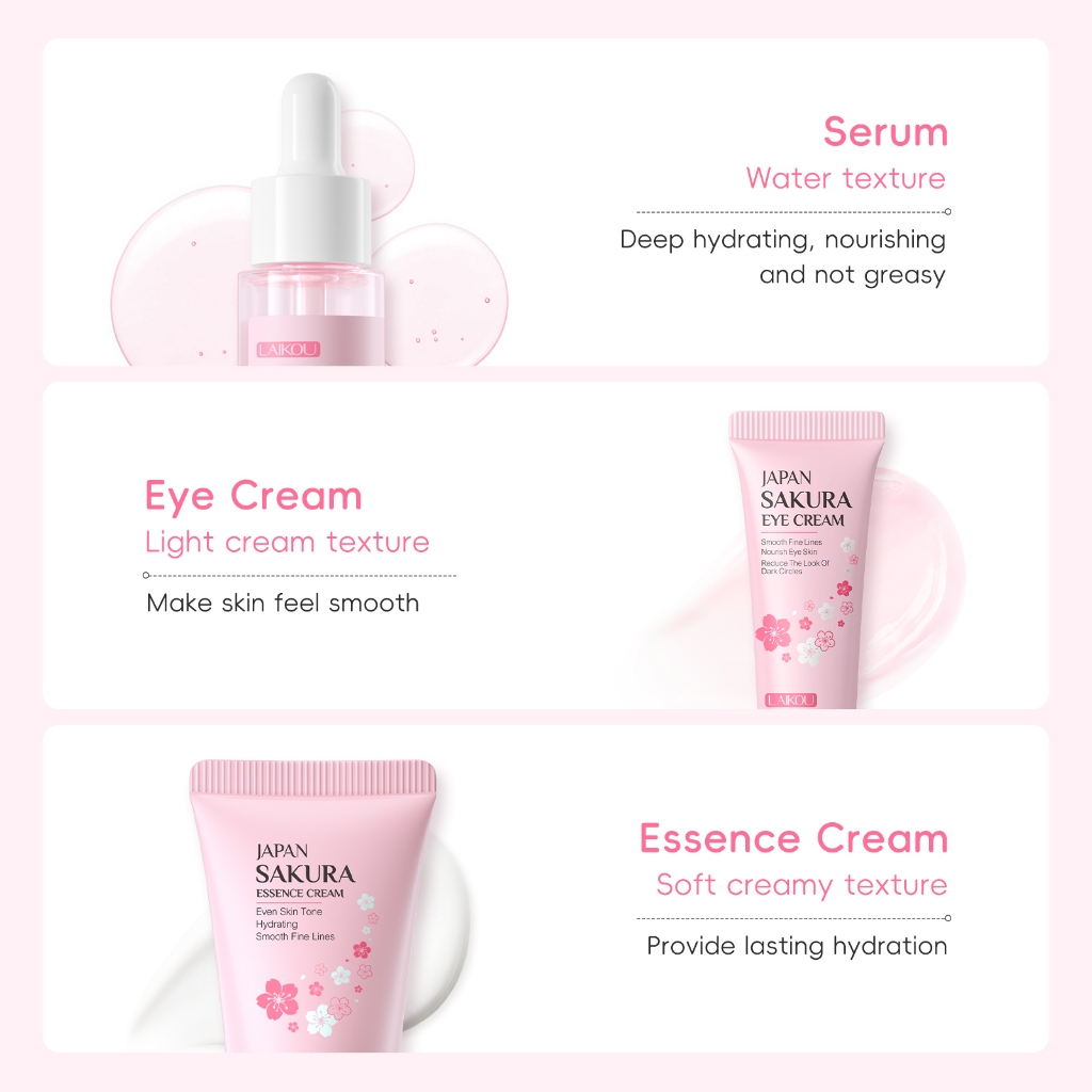 [Tudo O Que Você Precisa] LAIKOU Sakura Radiance Skincare Collection Hidratação Brilhante Da Pele Nutritiva Com Bolsa De