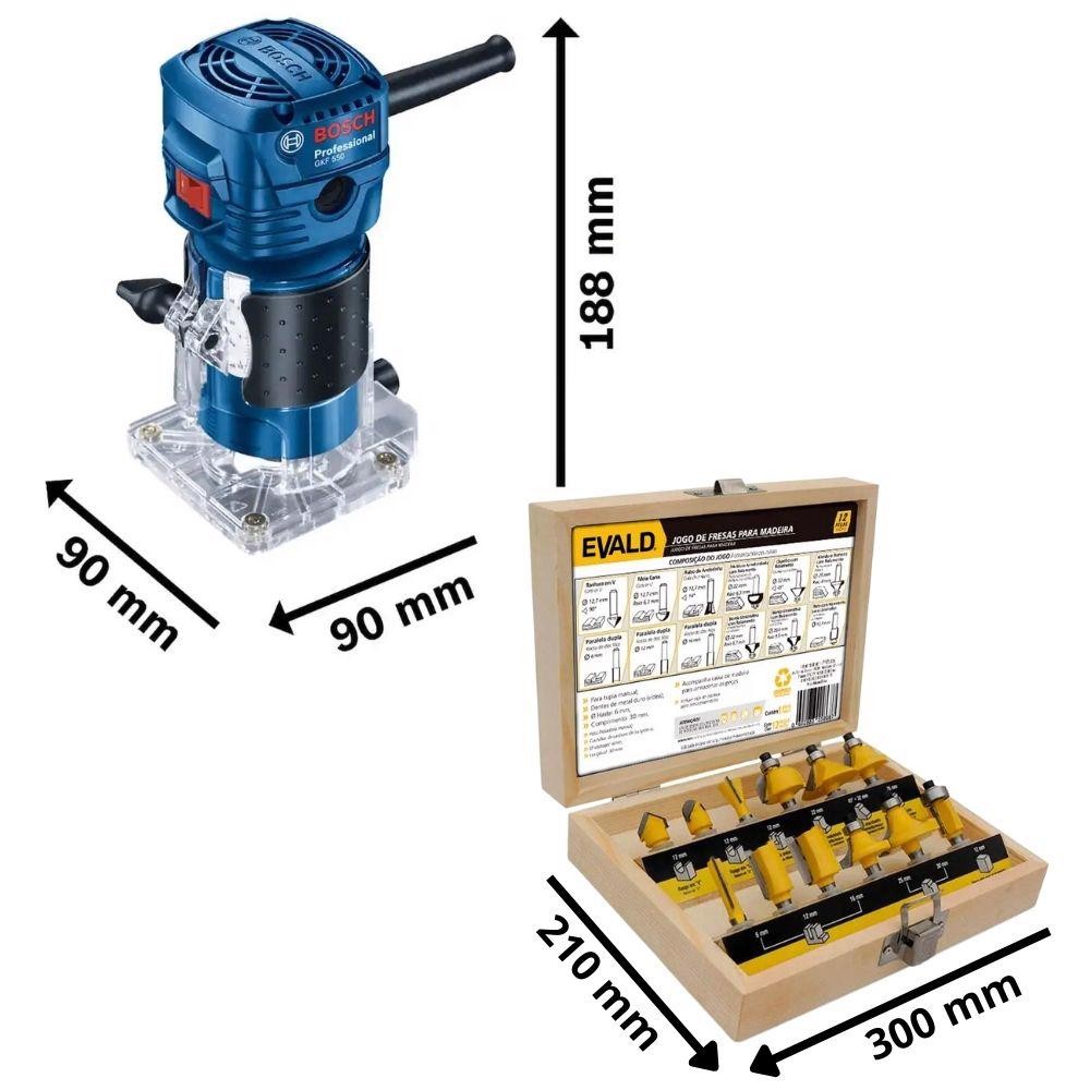 Tupia 6mm para Laminado 160A 550W BOSCH com Jogo de Fresas 12 Peças 6mm EVALD