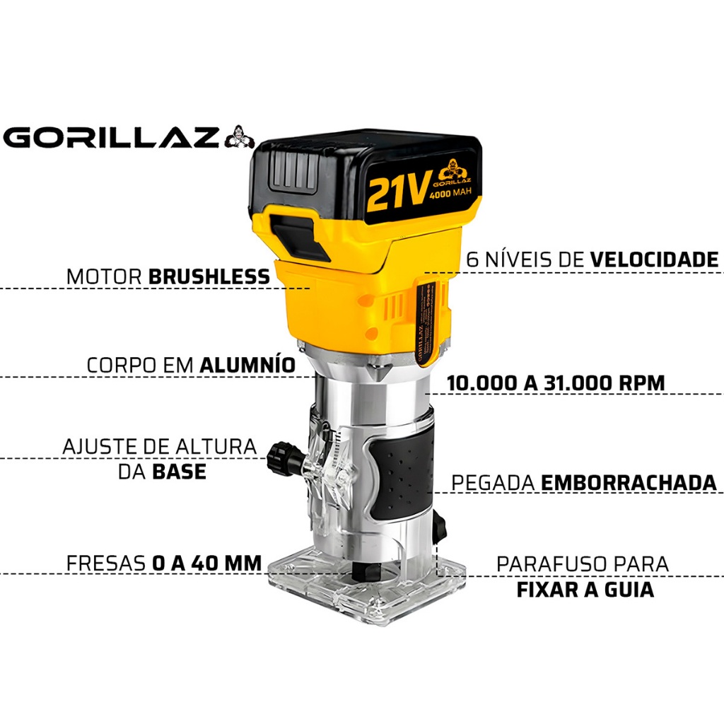 Tupia Laminadora Manual 21v 2 Baterias Motor Brushless Gorillaz Com Acessórios