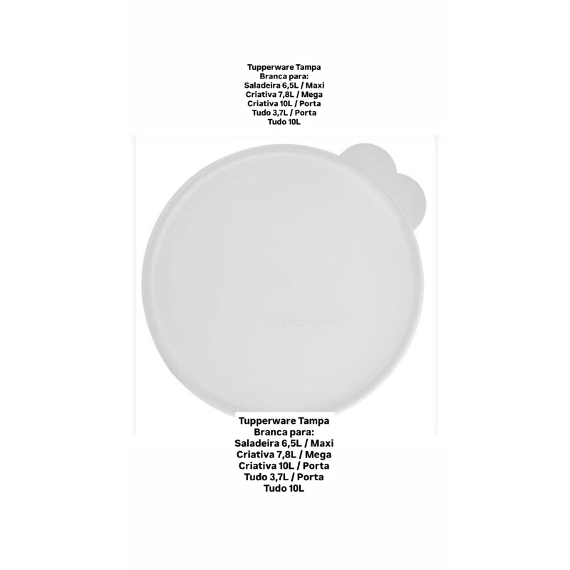 Tupperware Tampa Branca para: Saladeira 6,5L / Maxi Criativa 7,8L / Mega Criativa 10L / Porta Tudo 3,7L / Porta Tudo 10L