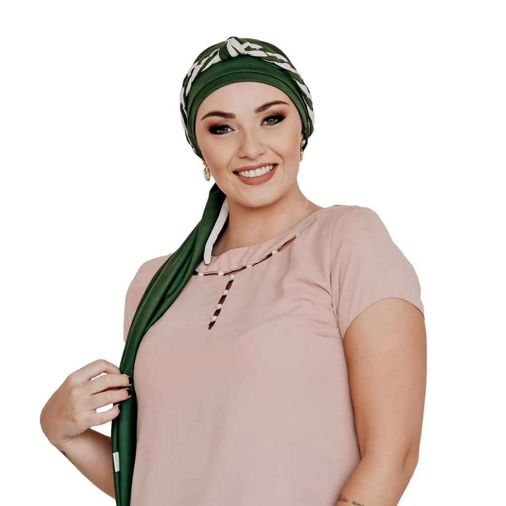 Nossos produtos são de autoria e confecção própria, exclusiva da Estação Outono. Este modelo é um Turbante acabamento impecável onde possui abertura para encaixar na cabeça e com as pontas consegue fazer um laçarote no alto da cabeça. Acompanha uma tiara que é junção de 2 modelos: tiara de trança simples + tiara de nó, tem conexão formando assim ELOS e um lindo detalhe no centro e laterais. OBS: A tiara não é fixa no turbante!!! O Turbante é confeccionado em tecido que não encolhe, mantém a forma e cor, possui um toque suave e resistente com 30.1 fios, tem durabilidade, não enruga, são agradáveis ao calor e frio, não esquenta na cabeça e não escorrega, são confortáveis e muito fácil de usar, possui brilho, tem toque acetinado, cria menos pilling (bolinhas), seca rapidamente e quase não amassa. A malha PV é composta de 65% dos fios de poliéster e 35% de viscose. . Serve para todos os tamanhos de cabeça, ou seja, os turbantes são de tamanho único, e são ajustados com nó na parte de trás do turbante ou dando um laçarote no alto da cabeça. Os turbantes da Estação Outono são indicados para mulheres que estão passando por tratamento quimioterápico ou alopécia (queda de cabelo), onde o couro cabeludo fica bem sensível e requer uma peça estilosa e confortável, com toque suave. Já vem pronto, prático e fácil de usar. Estoque Limitado. Marca: Estação Outono Modelo: Turbante com tiara de trança simples Elos na cor escolhida Diferenciais: Produto desenvolvido por nós ! Tecido: Malha PV Composição: 65% poliéster e 35% viscose Características: Antipilling e antialérligo