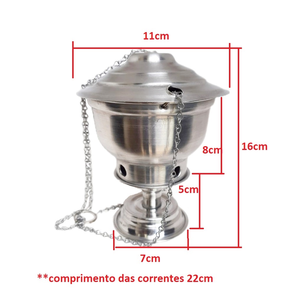 Turibulo Incensário Polido Com Pé Jta Mais Kit Defumação