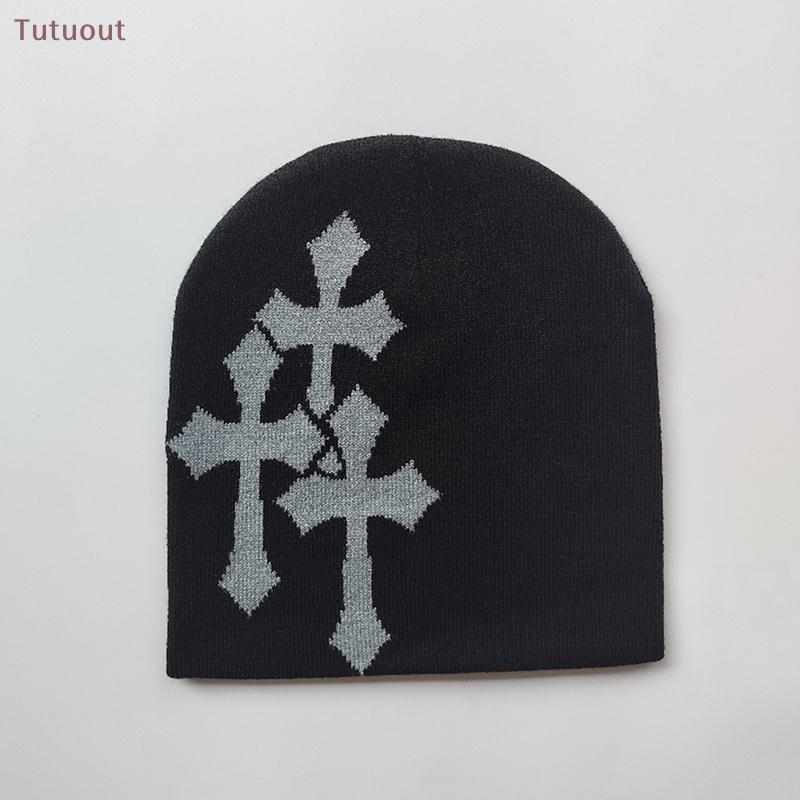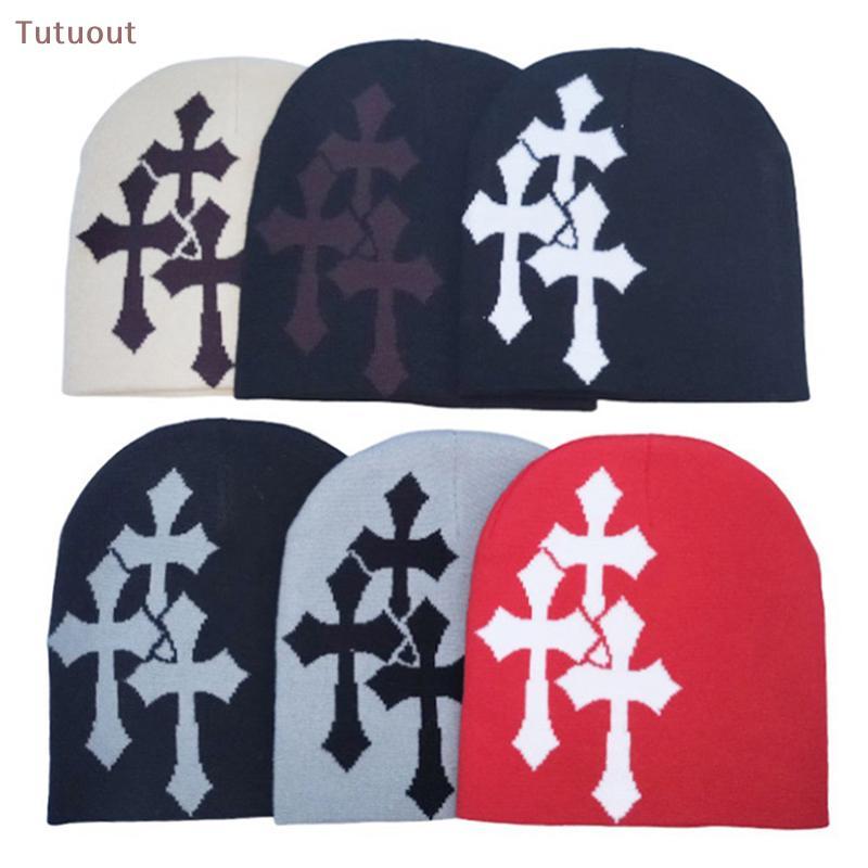 TUTU Y2K Cruz Chapéu De Malha Outono Inverno Rua Novo Unisex Quente Pessoal Versátil Moda Nicho Gorros BR