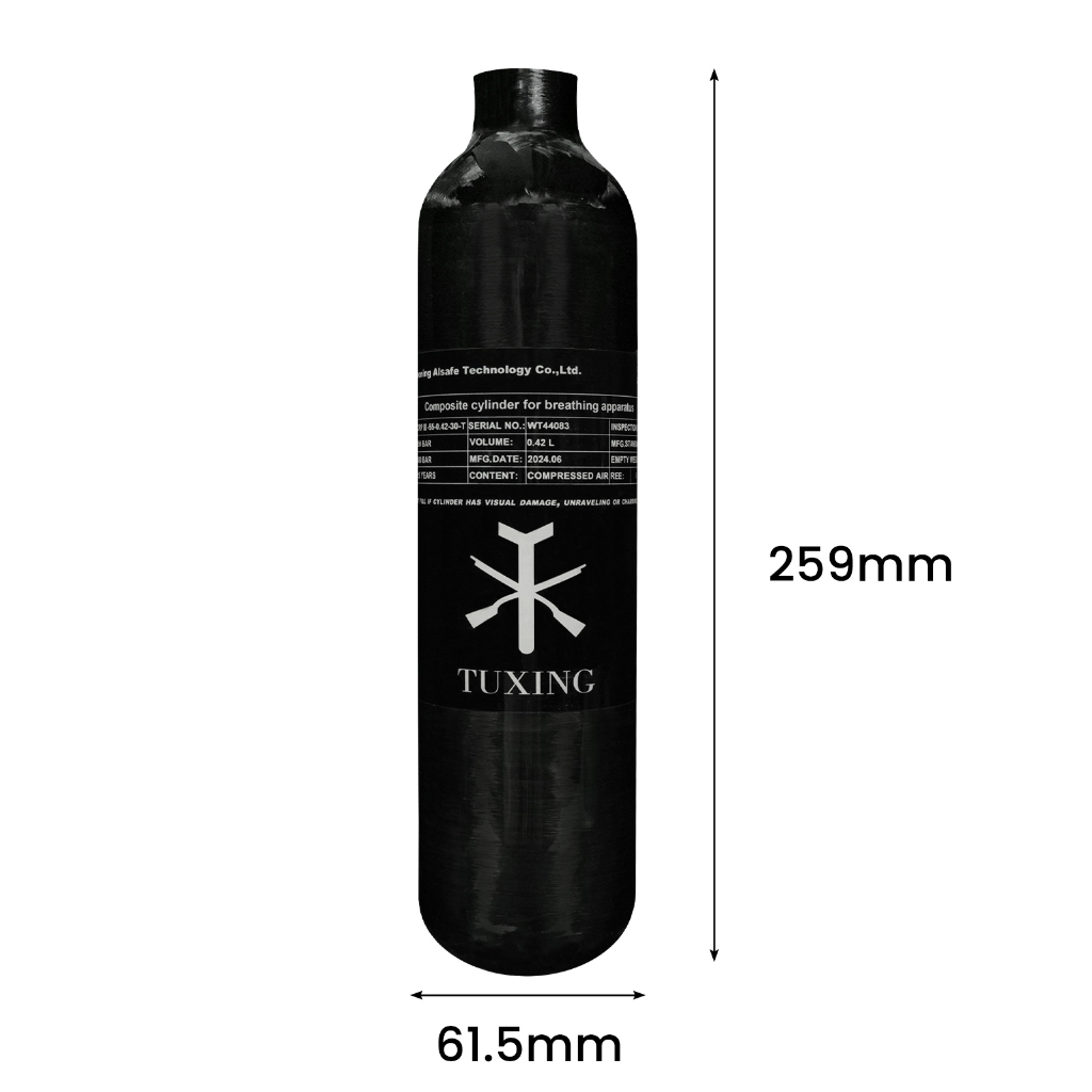 TUXING 4500Psi 300Bar 0.42L 420CC PCP Cilindro de fibra de carbono Tanque de alta pressão M18*1.5
