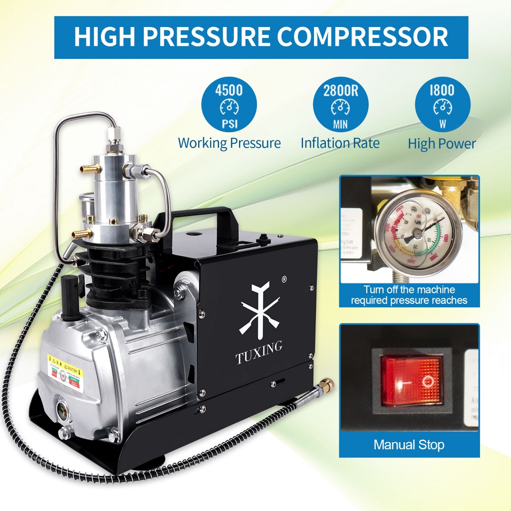 TUXING TXES021 300Bar PCP Compressor de ar 4500Psi Tanque de mergulho de alta pressão Rifle 220V