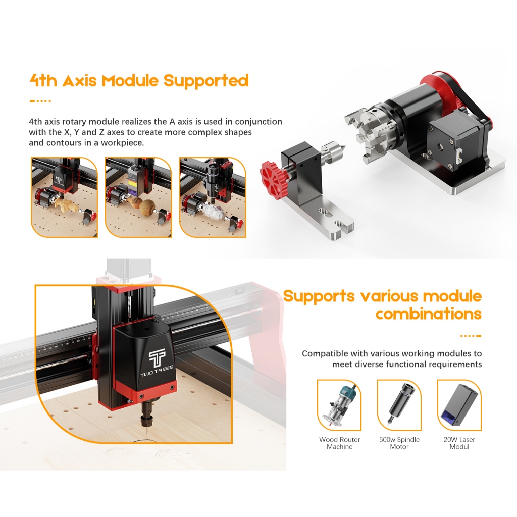 TWOTREES TTC 450 Pro CNC Máquina de gravação 110-240V Cnc Router Metal/alum/acríl+aparador 500W/80W