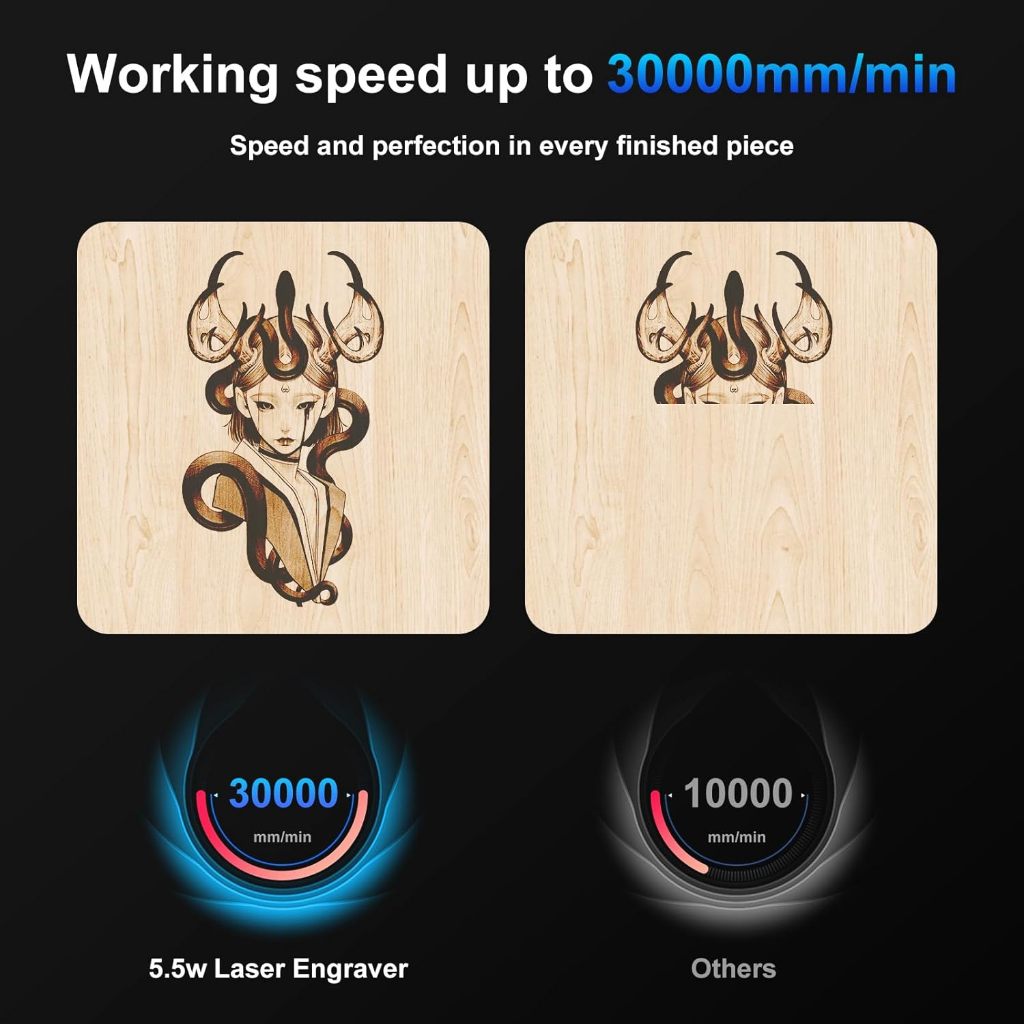 【Upgraded Laser Power with Air Assist Support】The TTS-55 PRO features a powerful 5500 mW (5.5W) laser (Class II) and includes a newly added metal air-assisted nozzle and red laser shield. These upgrades provide enhanced cutting performance and safety while making it easier to integrate an air assist system for cleaner, deeper cuts. 【High Precision Engraving & Cutting Across Multiple Materials】0.08*0.46mm super fine spot focus,Capable of engraving and cutting a wide range of materials including wood, leather, acrylic, paper, stainless steel, and more. Cut through 5mm plywood, 3mm acrylic, and 0.7mm leather with precision.Working area 300x300mm. Ideal for hobbyists, makers, and small business projects. 【Advanced Compression Laser Technology】Equipped with LD+FAC+C-Lens compression technology, the short 23mm focal length delivers stronger cutting power and sharper engraving detail. Achieve ultra-fine results with up to 0.1mm engraving accuracy. 【High-Speed, Smart 32-Bit Control Board】Runs on a fast dual-core 32-bit MCU, enabling engraving speeds up to 30,000mm/min. Supports both online and TF card offline engraving, plus built-in Wi-Fi for mobile app or computer web control—wireless engraving made easy. 【Software & System Compatibility】Fully compatible with LaserGRBL (Windows XP/7/8/10) and LightBurn (Windows, macOS, and Linux). Whether you’re a beginner or an experienced creator, you’ll find intuitive controls and powerful tools to bring your ideas to life. 【Easy to Install & 24/7 Support】Twotrees TTS-55 Pro 5500MW laser engraver comes with all tools needed and detailed guides for installation and use. Our support team is available 24/7 for any assistance you need. Especificações: Material: Liga de alumínio Cor: Azul Plugue: Plugue AU Porta de comunicação: Micro USB Entrada de energia: AC 100-240V Potência de entrada: 35-40W Potência do laser: 5000-5500mW Comprimento de onda do laser: 445±5nm Área de gravação: 30*30cm/11,81*11,81in Precisão de gravação: 0,01mm Sistemas compatíveis: Win XP/7/8/10 Placa controladora: Placa-mãe LKS Dimensões do produto: 56,8*48,5*5,6cm / 22,36*19,09*2,2in Dimensões da embalagem: 52,7*23,5*18,8cm / 20,75*9,25*7,4in Peso da embalagem: 4050g Observações: Devido Devido às diferenças de monitor e efeitos de luz, a cor real do item pode ser ligeiramente diferente da cor mostrada nas imagens. Por favor, permita uma variação de 1 a 3 cm nas medidas devido à medição manual. Agradecemos a sua compreensão! Lista de embalagem: 1 * Máquina de gravação a laser (ROLO selecionável) Garantia de qualidade: 180 dias