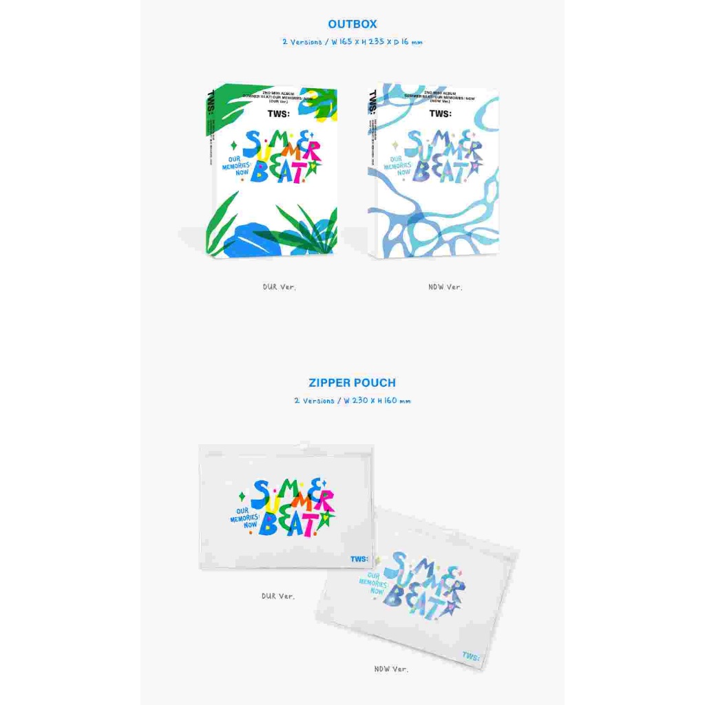 Atualizado: 2024-05-27 Data LIBERADA: JUNHO 24, 2024 💽Barco DE VERÃO do Mini Álbum TWS 2o BARCO DE VERÃO do Mini Álbum!' Versão: NOSSA / AGORA 🔎Componentes: -Outbox -Outbox: 1 cada versão / W165 × H235 × D16 (mm) Bolsa com zíper: 1 cada versão / W230×H160 (mm) -Livro Da foto: 1 tipo de cada versão / W140×H200×D7 (mm) / 116 Páginas Ambientador de papel -Ambientador de papel: 1 tipo / W70×H60 (mm) Mensagem: 1 tipo / W90 × H110 (mm) -Mensagem: 1 tipo / W90 × H110 (mm) -Pacote De adesivos: 1 tipo (conjunto de 5 EA) / OPP - W100 × H130 (mm), Cabeça - W100 × H40 (mm) Filme deslizante: 1 cada versão / W50 × H50 (mm) -Filme deslizante: 1 cada versão / W50 × H50 (mm) Moldura de cartão de foto: 1 de 2 inserção aleatória / W55 × H85 (mm) -Cartão De foto: 1 de 6 versões inseridas aleatoriamente / W55 × H85 (mm) -Tiquete: 1 tipo / W85×H55 (mm) -CD-R: 1 tipo de cada versão