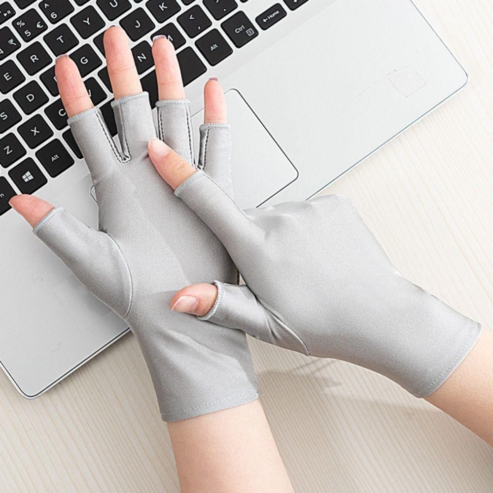 TYLER 1 Par De Luvas Femininas De Proteção Solar , Finas De Seda Gelada Semi-Dedo Spandex , Respiráveis