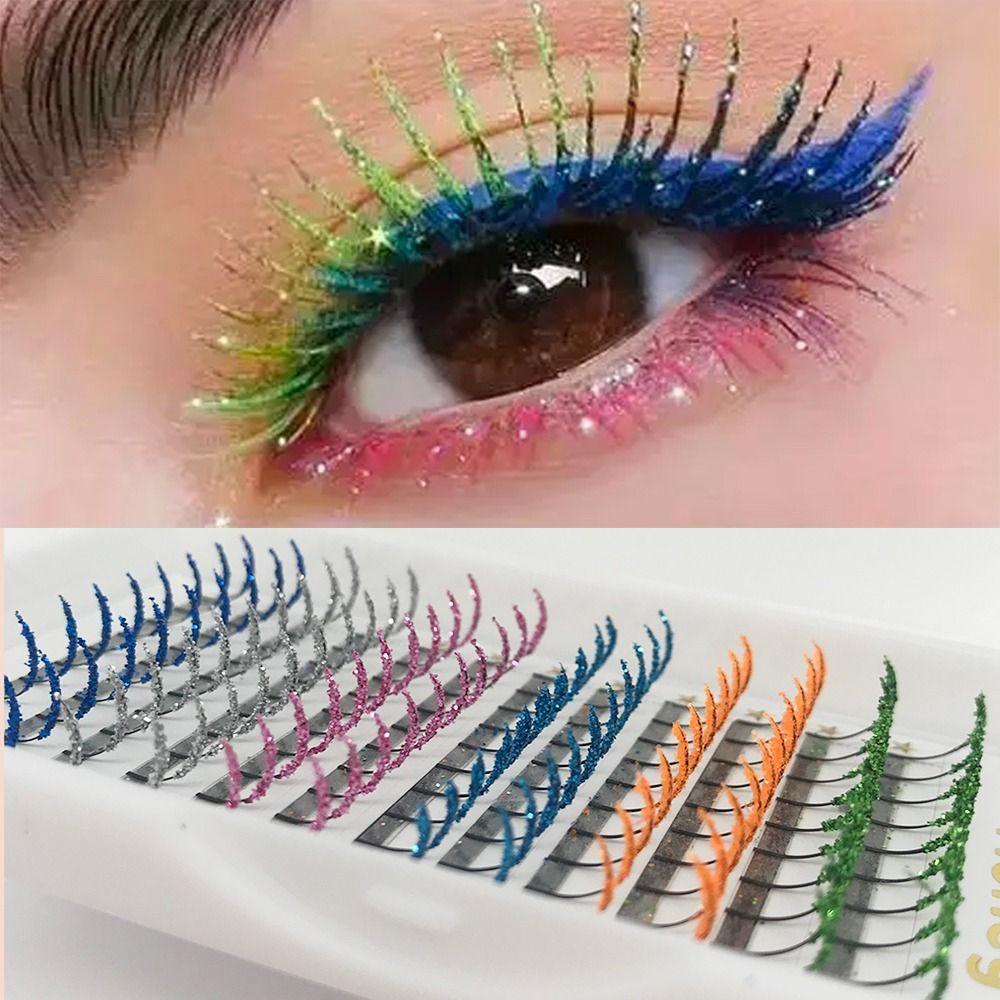 TYLER Cílios Coloridos Glitter Fofos Dramáticos Falsos Segmentados Extensão De Maquiagem Enxerto Individual Cluster