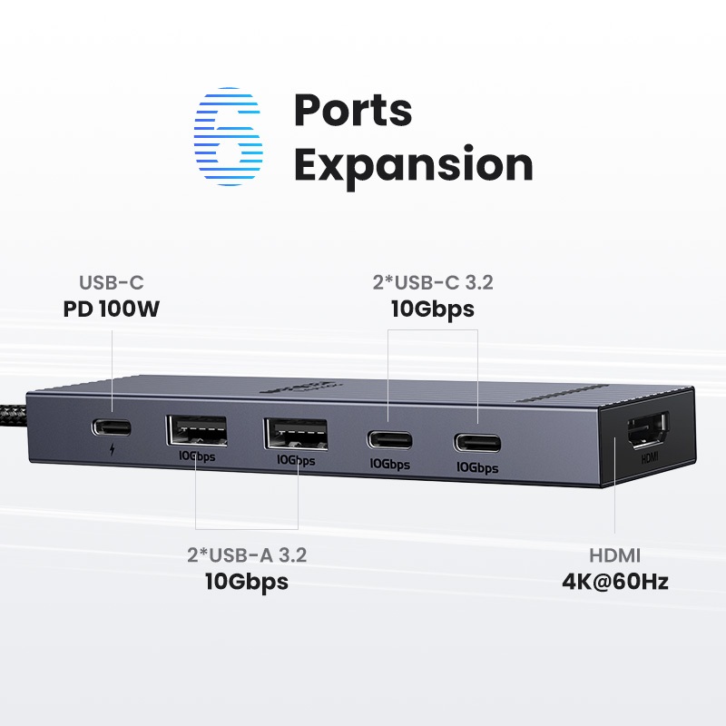 UGREEN 4K60hz 6-Em-1USB-C Estação De Ancoragem Multifuncional USB3.2 Gen2 10Gbps Para iPad Air M2 11 " 13'2024 MacBook