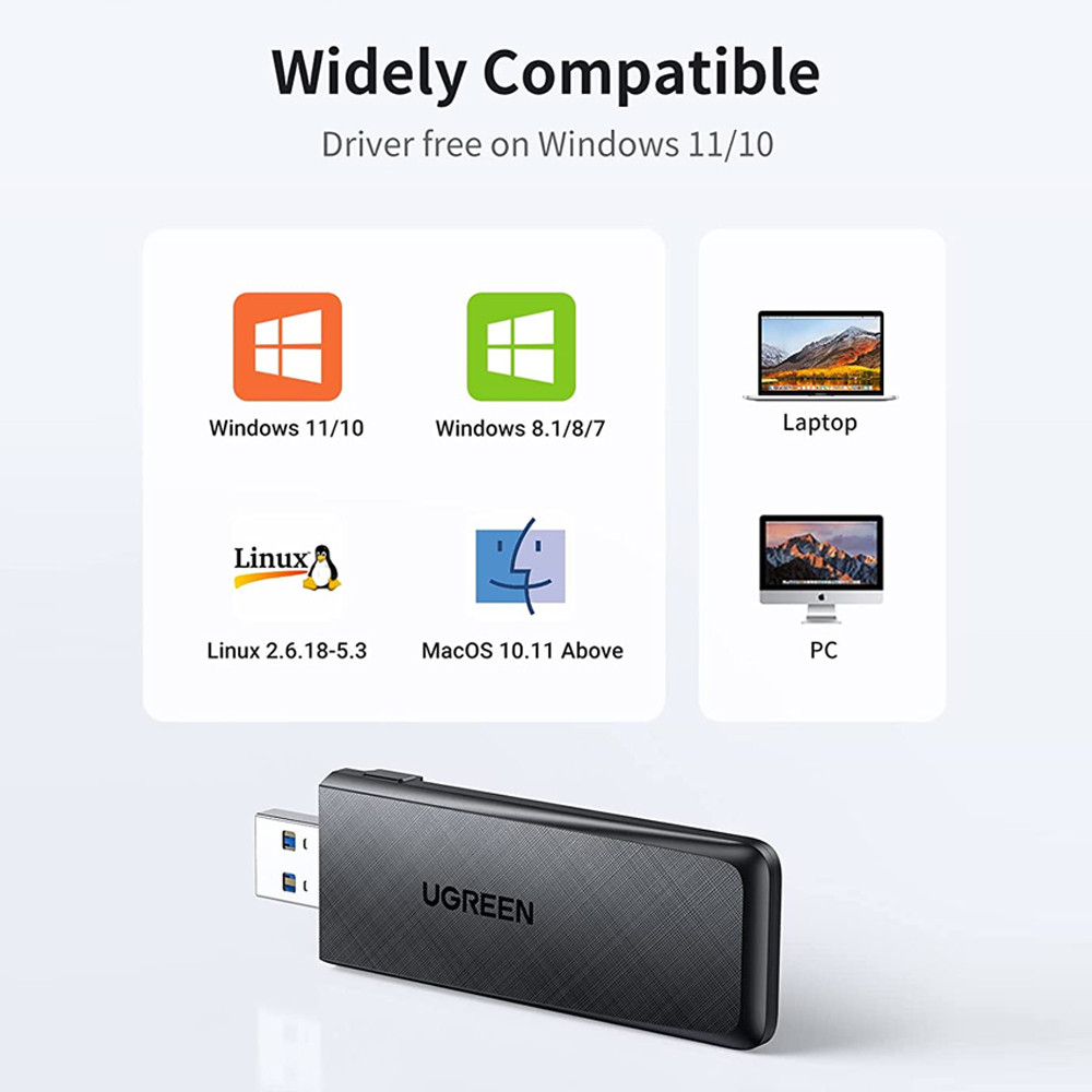 Adaptador Wi-Fi Ugreen com Interface USB 3.0, Dual Band 2.4GHz e 5GHz, Plug and Play, Compatível com macOS, Windows e Linux, Ideal para Jogos e Streaming 1. O adaptador Wi-Fi Ugreen com interface USB 3.0 é a solução ideal para quem busca conexões rápidas e estáveis. Suportando Dual Band (2.4GHz e 5GHz), ele oferece flexibilidade para diversas atividades, como jogos online, streaming em alta definição e navegação fluida na web. 2. Compatível com sistemas macOS, Windows e Linux, este adaptador garante ampla versatilidade para diferentes dispositivos. Ele é perfeito tanto para desktops quanto para laptops que precisam de uma conexão Wi-Fi confiável e de alta performance. 3. A interface USB 3.0 maximiza a velocidade de transmissão, reduzindo latências e melhorando a estabilidade da conexão. Isso torna o adaptador uma excelente escolha para gamers e usuários que exigem desempenho superior em redes sem fio. 4. Seu design compacto e elegante na cor preta combina estilo e funcionalidade, sendo fácil de transportar e usar em qualquer lugar. É uma solução prática para melhorar ou adicionar conectividade Wi-Fi a seus dispositivos de forma descomplicada. 5. Com tecnologia avançada e suporte a bandas rápidas, o adaptador Wi-Fi da Ugreen é indispensável para otimizar sua experiência online, garantindo uma navegação estável e eficiente em todas as suas atividades digitais. Garantia 90 dias