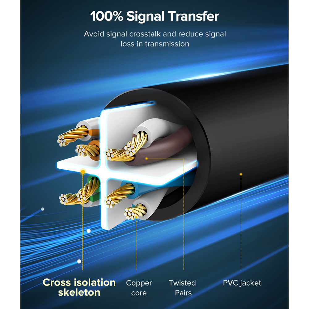 Ugreen Cabo de Rede Cat Utp 6 Cabo Rj45 1000Mbs Enthernet 1 Metro Largura de Banda de até 1Gbps Ideal para Internet de Alta Velocidade e Redes Domésticas e Empresariais 1. O UGREEN Cat 6 U/UTP Lan Cable 1m (Black) 20159 é construído com cabo Cat.6 para conexão de alta definição. Desenvolvido com folha de cobre de 24AWG, assegura potência e estabilidade sem refletir os sinais. Sinal de alta qualidade para aproveitamento estendido da rede Gigabit; 2. Oferece conectividade intermitente em todos os computadores, decodificadores (TV Box), modems, roteadores, switches, NAS (Network Attached Storage), consoles de jogos on-line e muito mais; 3. Conta com jaqueta PVC suave para uso externo, garantindo resistência contra impactos mecânicos, risco de choque elétrico e elevada flexibilidade para evitar enroscos. Possui dois conectores RJ-45, proporcionando uma conexão estável de 10/100/1000Mbps; 4. O cabo conta com conector padrão 8P8C e plugues de ouro 50U com chip E-Marker para aumentar a confiabilidade, além de eliminar marteladas e ruídos para melhorar a qualidade de vídeo e áudio; 5. O UGREEN Cat 6 U/UTP Lan Cable 1m (Black) 20159 oferece suporte múltiplo para cancelar eletricidade estática e proteger contra picos de tensão. Com suporte DDM (Diagnostic Device Manager) para garantir cabos de qualidade em ambientes controlados. Garantia: 90 dias