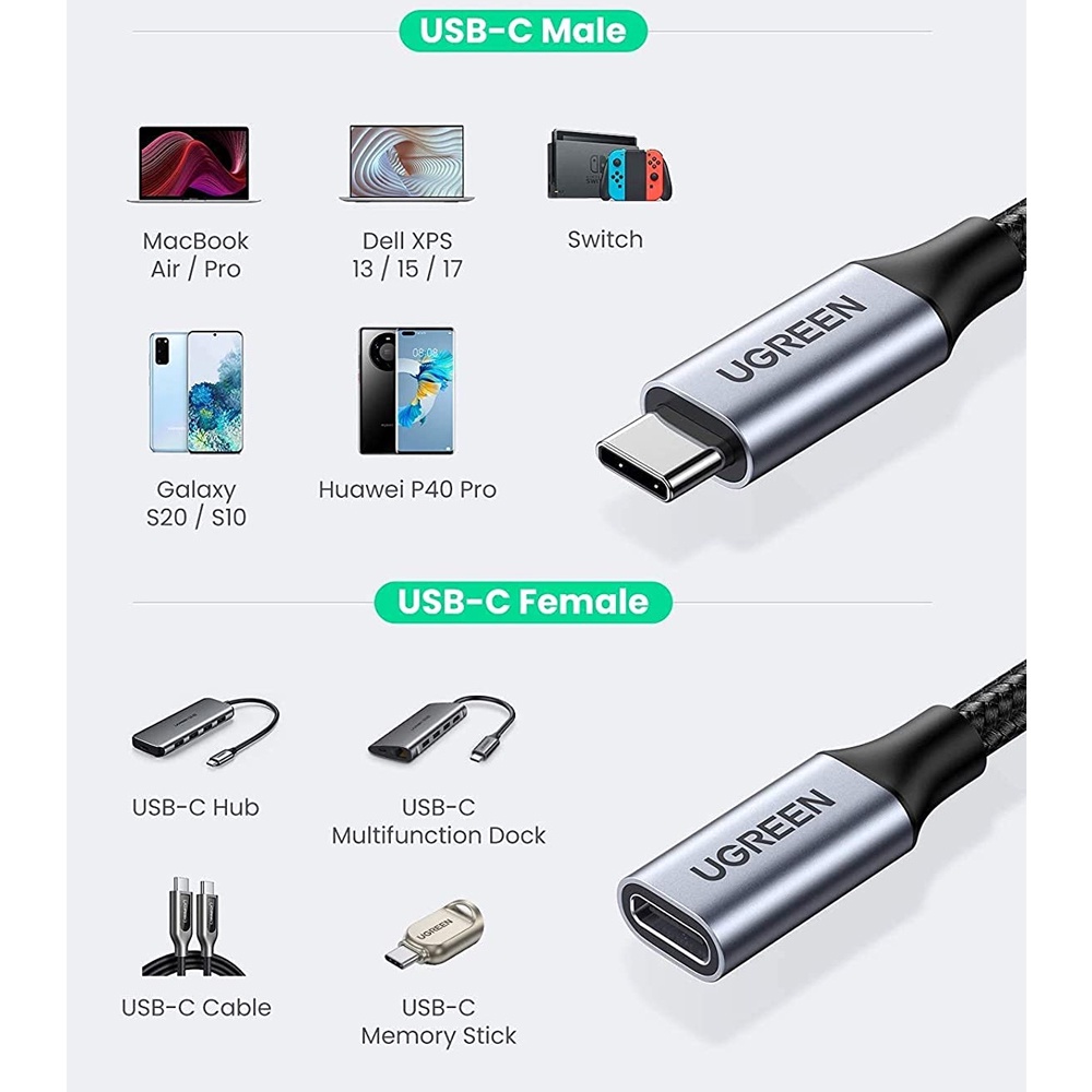Ugreen Cabo Extensor Usb-C 100W Macho/Fêmea Gen 2 5A 0.5M