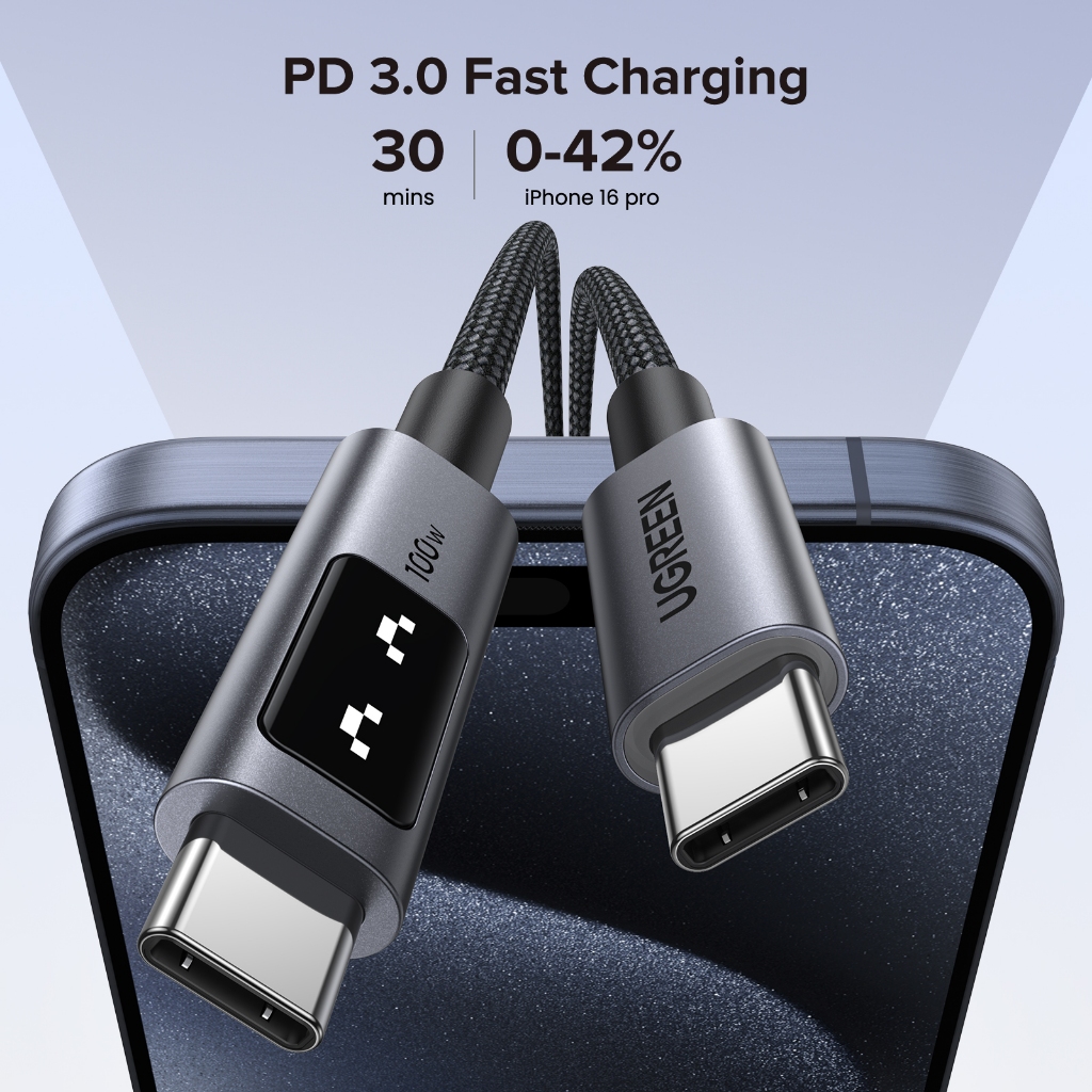 UGREEN Uno 100W Tipo C Cabo De Carregamento Rápido E-Marker Para iPhone Série 15 Samsung S24 S23 Ultra iPad Pro Macbook