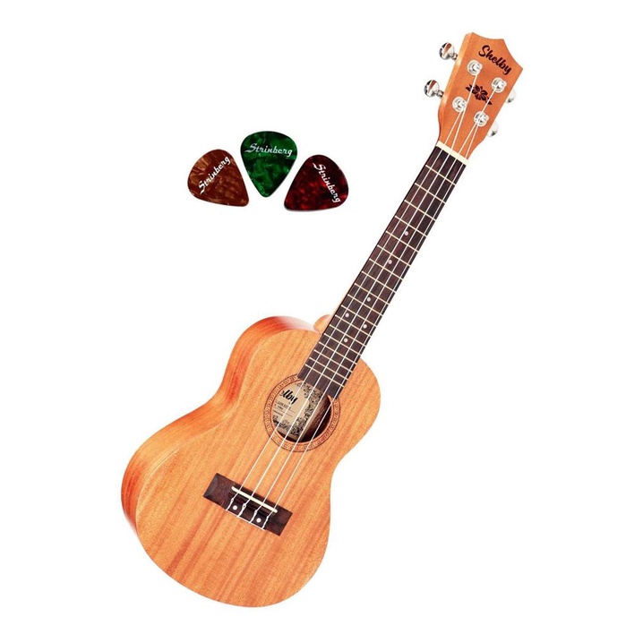 Somos a Eletromusic Loja Especializada a mais de 10 anos no Mercado. Qual e o nosso diferencial? Buscamos sempre oferecer qualidade com excelencia por isso todos os nossos produtos sao de Fornecedores Nacionais com rigoroso controle de qualidade, possuem nota fiscal eletronica e garantia de fabrica. Voce e bem vindo para fazer parte da nossa historia. A marca SHELBY se destaca por oferecer ALTA qualidade e acessibilidade, ou seja, o melhor pelo melhor custo x beneficio. A linha de Ukuleles foi desenvolvida com excelente acabamento, sonoridade, timbres caracteristicos, alta gama de recursos e o melhor de tudo, sem pesar no bolso. O Ukulele Shelby concert su23m, com captacao de contato, cor natural, acabamento cuidadoso, madeiras selecionadas e de alta qualidade. INFORMACOES TECNICAS su23m: . Lateral: Mogno . Fundo: Mogno . Tampo: Mogno . Tarraxas: Prateadas . Marca: Shelby . Produto: Ukulele Concert su23m Eletrico Esse kit contem: x1 Shelby Mogno SU23M com captador