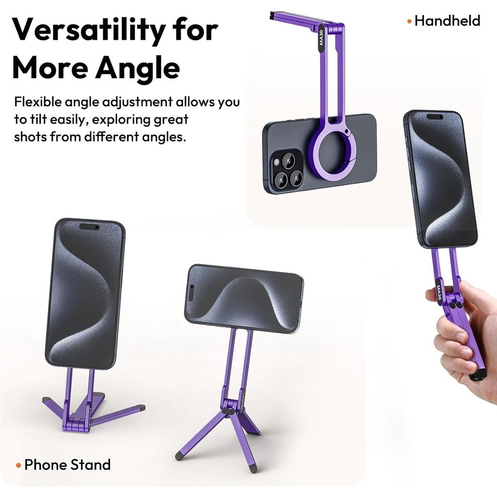 Ulanzi MA30 Mini Tripé Celular Roxo com Mosquetão de Engate Rápido - Suporte Portátil e Universal para Smartphone, ideal para Gravações de Vídeo, Fotos e Vlogging em Viagens e Aventuras 1. O Ulanzi MA30 Mini Tripé Celular Roxo revoluciona sua experiência de fotografia e vídeo móvel. Com seu inovador design de mosquetão, este suporte para smartphone oferece portabilidade e segurança incomparáveis, permitindo que você o prenda facilmente a mochilas ou cintos para acesso rápido e descomplicado em qualquer aventura. 2. Desenvolvido para criadores de conteúdo e viajantes, o MA30 é um tripé portátil extremamente leve e compacto, ideal para gravações de vídeos, fotos de paisagens, lives ou vlogging. Sua construção robusta garante estabilidade em diversas superfícies, tornando-o o acessório perfeito para capturar momentos em movimento. 3. Equipado com um sistema de engate rápido, este mini tripé para celular facilita a montagem e desmontagem do seu aparelho em segundos. Sua compatibilidade universal garante que a maioria dos smartphones seja fixada com segurança, proporcionando ângulos flexíveis para obter a melhor perspectiva em suas produções. 4. Com acabamento na elegante cor roxa, o Ulanzi MA30 não é apenas funcional, mas também estiloso. Fabricado com materiais de alta qualidade, ele oferece durabilidade e resistência para acompanhar seu ritmo, seja em ambientes urbanos ou naturais, assegurando um suporte confiável para seu dispositivo. 5. Transforme seu smartphone em uma poderosa ferramenta de gravação com este suporte de celular inovador. Adquira o Ulanzi MA30 e eleve a qualidade de suas fotos e vídeos, garantindo estabilidade e praticidade em todas as suas criações digitais. Um item essencial para entusiastas de tecnologia e criadores de conteúdo. Garantia 90 dias