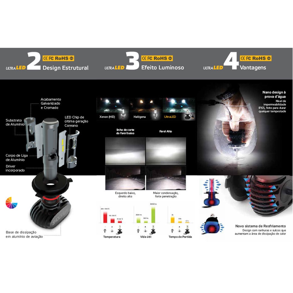 Bem Vindo à AT4U !!! Ultra Led Titanium ShockLight H1 H3 H4 H7 H8(H16-2) H11(H9) H13 H16 HB3 HB4 6000K 12V 50W 10.000 LUMENS As Lâmpadas UltraLED Shocklight garantem a melhor solução em iluminação automotiva, pois possuem tecnologia coreana de última geração, garantindo uma eficiência de 10.000 lúmens (5000 em cada lâmpada) que iluminam muito mais que lâmpadas halógenas comuns. Sua temperatura de 6000 K (kelvins) confere um visual com luz extremamente branca, mantendo a economia no consumo de apenas 50W (12v). Caso você queira atualizar e garantir uma iluminação mais forte e atraente, nós temos a lâmpada ideal para o seu veículo. Características: - Voltagem: DC9-32V - Lumens: 5000 (cada lâmpada) - IP Rate: IP65 - Chip:CSP Samsung - Temperatura Cor: 6000K - Dissipador: Alumínio de Aviação 6063 - Vida Útil: 20x lâmpada halógena - Temperatura de Operação: -40°C ~ +80°C Modelos Disponíveis: - H1 - H3 - H4 - H7 - H8 (Serve H16-2) - H11 (Serve H9) - H13 - H16 - HB3 - HB4 **** PARA SELECIONAR O MODELO DESEJADO DO ULTRA LED SHOCKLIGHT SELECIONE O MODELO ACIMA DO COMPRAR **** Especificações: - Acabamento Galvanizado e Cromado - Substrato de Alumínio - LED de Última Geração Coreano - Corpo de Liga de Alumínio - Driver Incorporado - Base de Dissipação em Alumínio de Aviação - À Prova D'água - Despolarizado - Com Certificações Internacionais de Qualidade CE, FC, RoHS e E4 - Resistente a Vibrações - Resistente ao Calor Conteúdo da Embalagem: - 01 Par de Lâmpada Ultra LED Shocklight 6000K 12V 50W 10.000 LUMENS - 01 Manual de Instalação IMPORTANTE: * Postagem em até 24h. * Entrega Garantida. * COMPRE COM SEGURANÇA. * Tire suas dúvidas via chat com nossos especialistas.