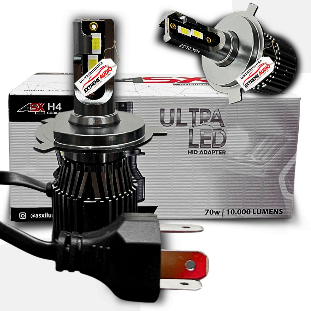 Ultra LED ASX Modelo CSP 70W 6000k 10000 Lumens 12/24V Com Cooler Alem de proporcionar um estilo diferente para a moto, como tambem para o motorista, este kit de lampadas e extremamente eficiente e inovador no mercado atual, pois consegue oferecer a qualidade e tonalidade de 6000 kelvins utilizando a tecnologia ULTRA LED CSP, com maior eficiencia de iluminacao baixa geracao de calor e melhor sistema de resfriamento. Este kit de lampadas possui tonalidade de 6000k, baixo consumo, pode ser utilizados em carro de 12/24 volts com garantia de vida util prolongada. A tonalidade branca e eficiente para melhorar a visualizacao de placas e sinalizacoes, como tambem incrementa um efeito estetico diferenciado. A instalacao e extremamente simples, nao necessita de reator ou rele. Modelos Disponiveis: . 70W 10000lms Tonalidade: . 6000K Especificacao Tecnica: . Marca: ASX . Tecnologia Japonesa: Ultra LED CSP . Sistema de dissipacao: Dissipador e cooler . Modelos disponiveis: H11/H8, H4, H7, Hb4/Hb3 . 6000K (Kelvins) Extremamente Branca . Base de Lampada: Em Aluminio . Eficiencia de Lm: 10000 Lumens . Vida Util de: 30000 Horas . Angulo de irritacao: 360 graus . Efeito de Iluminacao: 90 ~ 120lm / w . Temperatura de Trabalho: 40 ? C ~ 105 ? c . Consumo: 70W . Proporciona Melhora na Visualizacao de Placas e Sinalizacoes . Economiza a Bateria . Voltagem: DC 9 ~32V . Voltagem Compativel com Carro Caminhao Onibus e Maquinas . Cor de Temperatura : 60000k Conteudo da Embalagem: 01 Par Super ULTRA LED 10000 LUMENS 70W Importante: Garantia de 3 Meses. Valor do kit. A instalacao deve ser feita por profissional especializado. Recomendamos que a instalacao seja feita por profissional nao nos responsabilizamos por instalacao mal realizada.