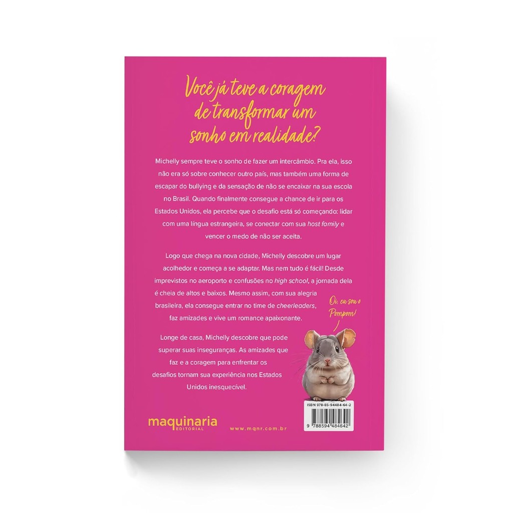 Você já teve a coragem de transformar um sonho em realidade? Michelly sempre teve o sonho de fazer um intercâmbio. Pra ela, isso não era só sobre conhecer outro país, mas também uma forma de escapar do bullying e da sensação de não se encaixar na sua escola no Brasil. Quando finalmente consegue a chance de ir para os Estados Unidos, ela percebe que o desafio está só começando: lidar com uma língua estrangeira, se conectar com sua host family e vencer o medo de não ser aceita. Logo que chega na nova cidade, Michelly descobre um lugar acolhedor e começa a se adaptar. Mas nem tudo é fácil! Desde imprevistos no aeroporto e confusões no high school, a jornada dela é cheia de altos e baixos. Mesmo assim, com sua alegria brasileira, ela consegue entrar no time de cheerleaders, faz amizades e vive um romance apaixonante. Longe de casa, Michelly descobre que pode superar suas inseguranças. As amizades que faz e a coragem para enfrentar os desafios tornam sua experiência nos Estados Unidos inesquecível. 16x23cm 288 Páginas