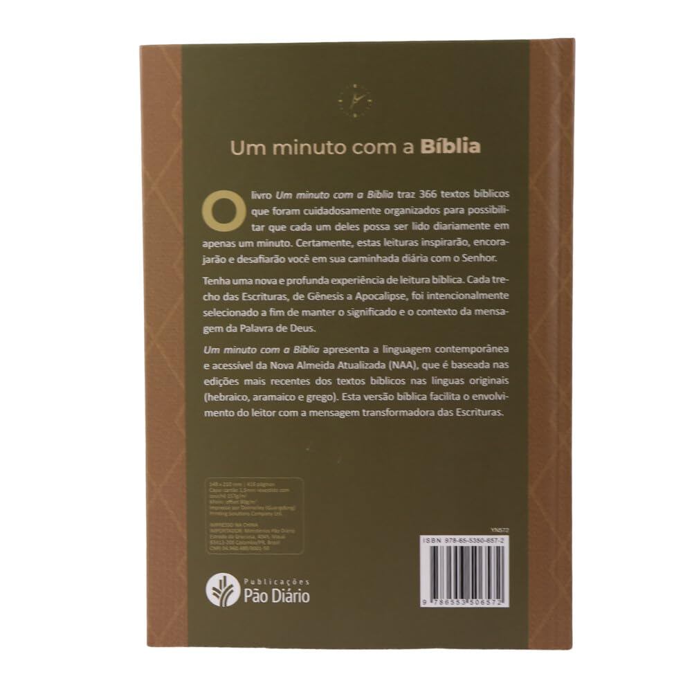 Sinopse Um Minuto com a Bíblia oferece uma meditação bíblica para cada dia do ano, com textos breves, diretos e encorajadores. É o recurso ideal para manter-se alimentado espiritualmente mesmo com pouco tempo disponível, proporcionando encontros diários com a verdade das Escrituras. Público-alvo: Leitores devocionais, novos convertidos, cristãos em busca de uma rotina de leitura bíblica disciplinada. 14x21 416 páginas