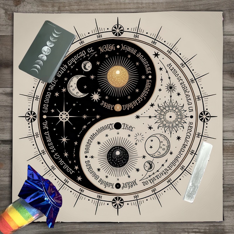Um Pano De Altar De Tarô Místico Para PC Vibrações Festivas Imbuadas Design Yin Yang Com Símbolos Celestiais , Ideal Rit