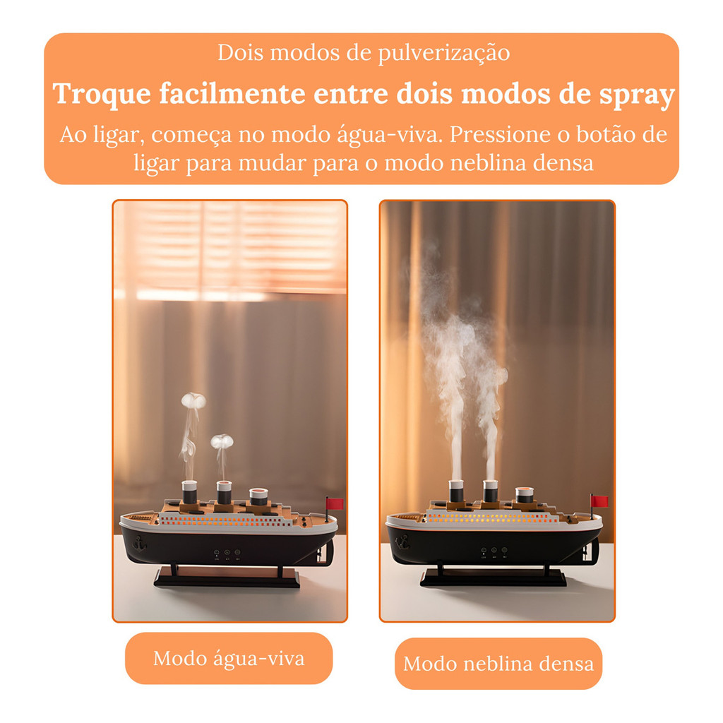 Umidificador Ar Navio Difusor Aromatizador Luzes Coloridas