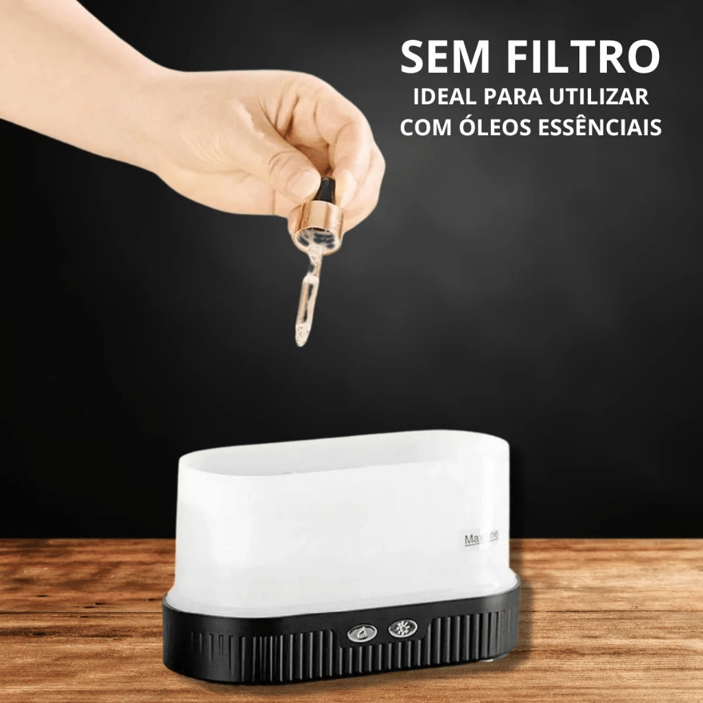 Umidificador Aromatizador Efeito Chama LED 200ml Portátil USB Silencioso