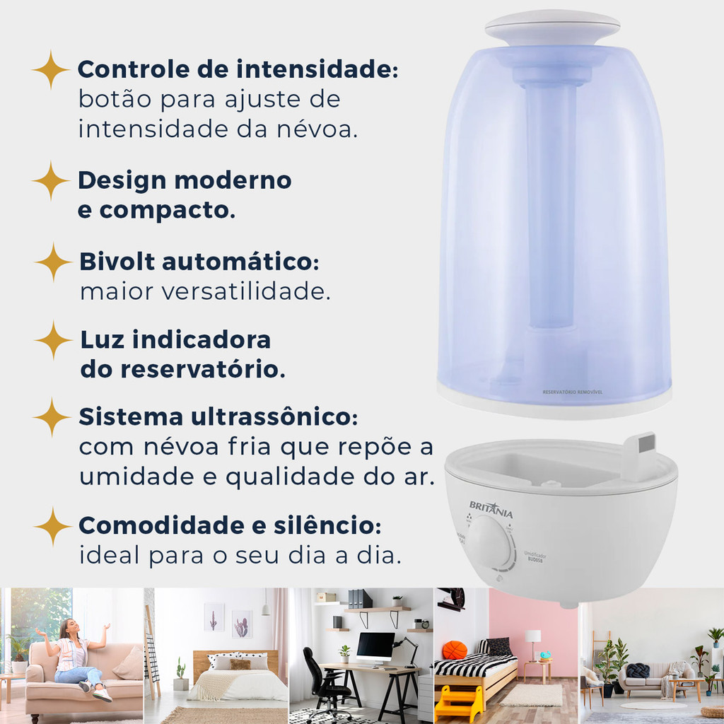 Umidificador de Ar 2,4 Litros BUD05B 12 Horas de Autonomia Névoa Fria Britânia