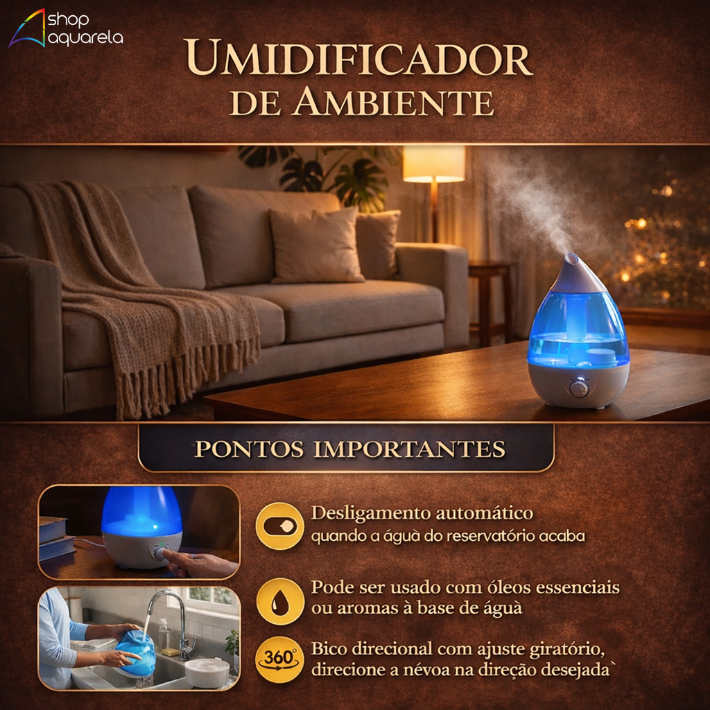 Umidificador de Ar 2.6L Difusor Aromático LED Bivolt B-Max BM-U04 Mais conforto e um ambiente mais agradável no seu dia a dia. O Umidificador de Ar 2.6L B-Max é ideal para melhorar a umidade do ar em quartos, salas, escritórios e consultórios. Com função difusor aromático e iluminação LED suave, ele une bem-estar e design moderno, ajudando a tornar o ambiente mais confortável, especialmente em locais com ar-condicionado ou clima seco. ⭐ BENEFÍCIOS NO USO DIÁRIO • Capacidade de 2.6 litros • Autonomia de até 10 horas • Função difusor aromático (essências à base de água) • Iluminação LED decorativa • Funcionamento silencioso • Bivolt automático • Ideal para uso residencial e profissional • Excelente custo-benefício ⚙️ INFORMAÇÕES DO PRODUTO • Marca: B-Max • Modelo: BM-U04 • Capacidade: 2.6 Litros • Autonomia: até 10 horas (variável conforme uso) • Tensão: Bivolt • Iluminação: LED • Função: Umidificador e difusor aromático • Funcionamento: Silencioso • Dimensões: 200 x 200 x 238 mm • Indicado para: Quartos, salas, escritórios e ambientes climatizados 📦 O QUE ACOMPANHA O PRODUTO • 1 Umidificador de Ar Difusor Aromático 2.6L • 3 Filtros de algodão • Adesivos de personalização • 1 Manual de instruções ❓ DÚVIDAS FREQUENTES • Pode usar essência aromática? Sim, desde que seja essência própria à base de água. • Faz barulho? Não. O funcionamento é silencioso, ideal para usar durante o sono. • Serve para ambiente grande? É indicado para ambientes de pequeno a médio porte. • Precisa instalar algo? Não. Basta adicionar água, conectar na tomada e ligar. 🛒 FINALIZAÇÃO Garanta já o seu com envio rápido e compra segura pela Shopee. Qualquer dúvida, estamos à disposição no chat.