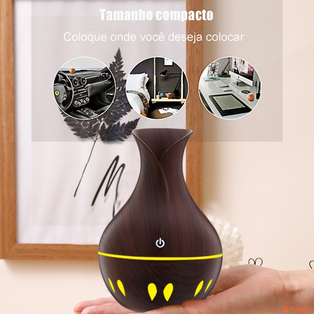 Umidificador De Ar E Aromatizador Mini Madeira USB Adequado Para Quarto Luzes De 7 Cores