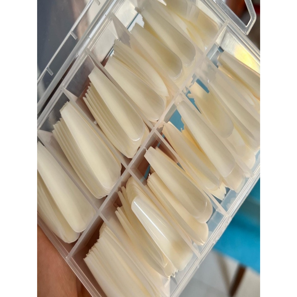 PARA MELHOR USO COLOCAR BASE ,PARA NAO RACHAR, Contém 1 caixinha com 100 unidades de unhas postiças Modelo: BAILARINA ALONGADA - Cor: NATURAL - Tamanhos variados. - Não acompanha cola São unhas de excelente qualidade. Ótimo custo benefício. Linda caixinha acrílica com divisões para o perfeito armazenamento. Alonga e dá maior beleza e fino acabamento nas suas unhas. Material plástico de alta resistência.