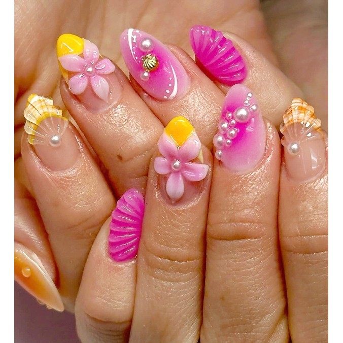 unha postiça amendoada decorada realista Com Cola Pérolas E Diamantes kit unhas postiças decoradas 3D Florais