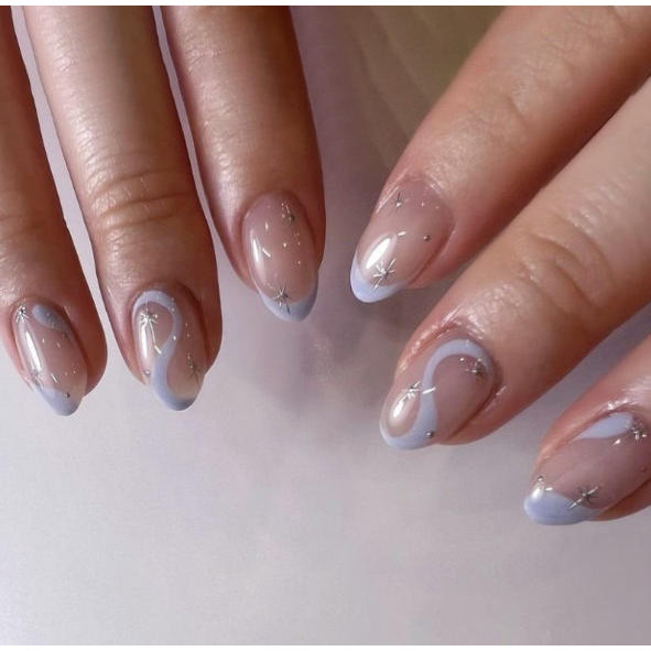 unha postiça realista curta amendoada Com Cola kit unhas postiças decoradas Ovais francesinha press on nails
