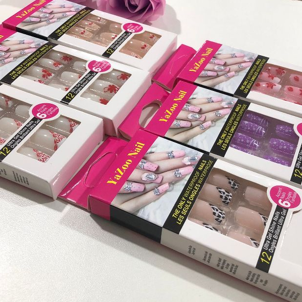 Quantidades diferentes, preços diferentes Cores e padrões são enviados aleatoriamente Descrição Do Produto 1 Caixa=Unhas Postiças C / 12 Unid Contém o kit de unhas + adesivos auto colantes para fixação. Dispensa o uso da cola.