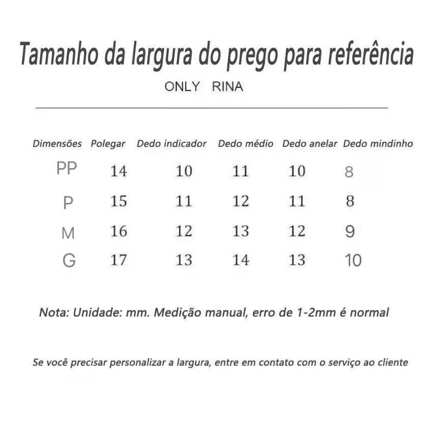 Bem-vindo à Loja ! Desejamos Boas Compras. Unhas de gel , boas qualidades! Adequados para uso diário de mulheres ,meninas e para eventos como suprimentos de unhas. Nossa kit composto por 10 unhas decoradas uma lixa cola líquida (um deles aleatoriamente) ou gel adsivo palitos para unha cutícula almofadas de algodão com álcool Medidas de Tamanho(mm): PP: 14/10/11/10/8 (Uma menina com dedos pequenos) P:15/11/12/11/8 ( A Primeira Seleção. A maioria das pessoas escolhe isso. ) M:16/12/13/12/9 (A menina com mãos carnudas) G:17/13/14/13/10 ( grande) Note: Para unhas planas, estilos com diamantes grandes e muitos acessórios, recomenda-se comprar um tamanho maior. Médias aproximadas, podem ocorrer variações 1-2 mm das medidas. Aqui são as medidas universais. Caso tem algumas unhas com a medida diferente, Contacte o atendimento. Caracteristica : 1. Fácil de carregar e descarregar 2. Unhas de Gel ,Reutilizáveis! 3. Confortáveis! 4. Use o gel solido pode durar 30 dias e mais. Obrigado por escolher nossos produtos, esperamos que esteja satisfeito com nossos produtos e desejamos um dia feliz!