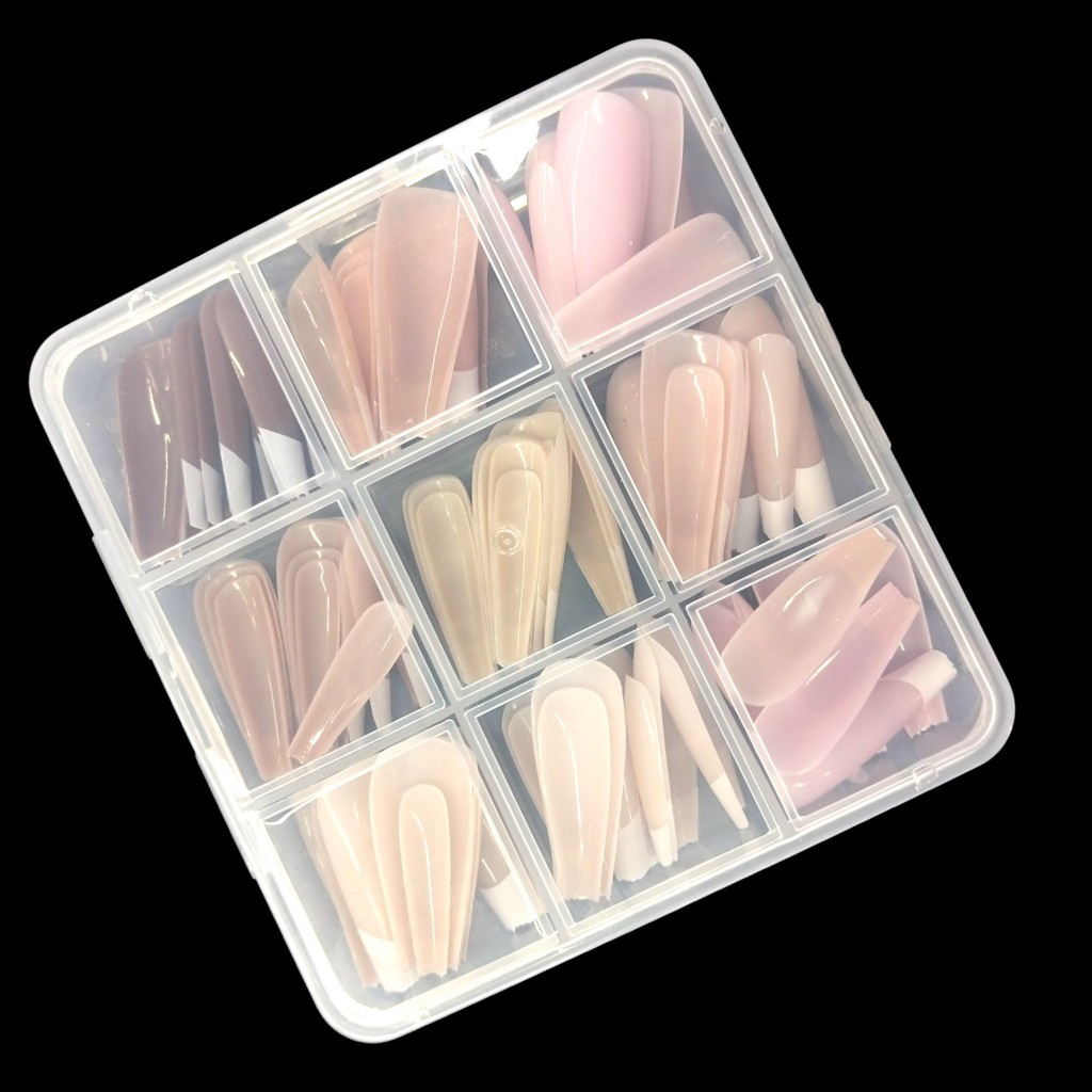 Unhas Postiças, Formato Bailarina Francesa Cores Variadas, 10 Tamanhos, Fácil Aplicação