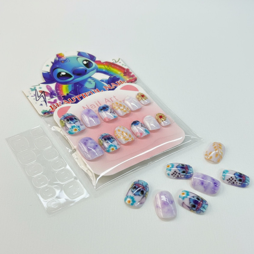Unhas Postiças Infantil Crianças + adesivo dupla face moda de menina unhas coloridas LILO STICH