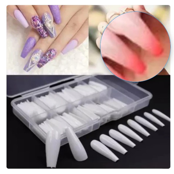 Unhas Postiças Realista kit com 100 Unidades Manicure Alongamento