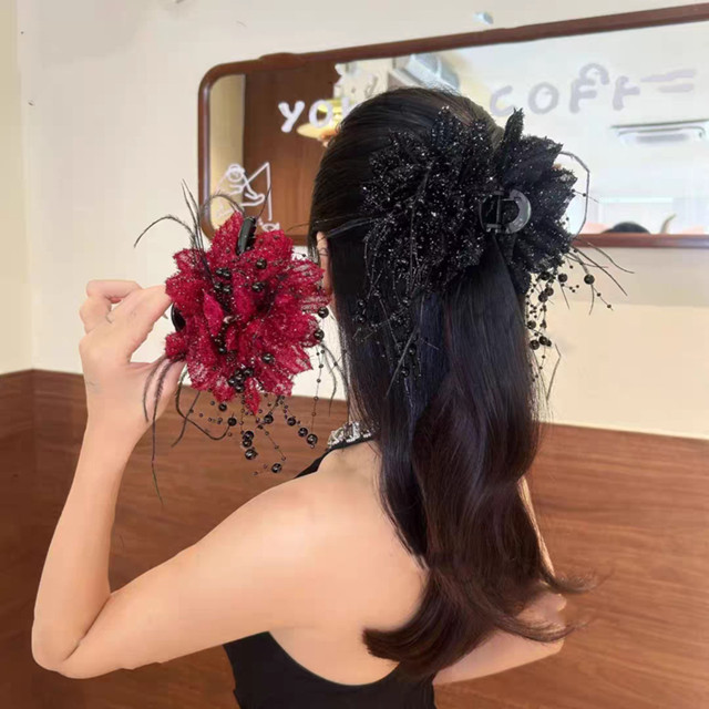 Único Coreano Coral Única Flor Borla Captura Acessórios De Cabelo De Deslocamento Feminino