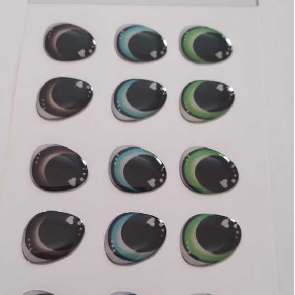 01 Cartela de Olhinhos Resinados Tamanho GG MODELO GOTA MEDIDA : 18 MM 9 pares Postagem imediata, temos grande estoque. Qualidade e preço justo. OBS: NÃO INCLUI ITENS DE DECORAÇÃO, SOMENTE A CARTELA Cartela Olhinhos Olhos Resinados Biscuit e Eva Cartela Olhinhos Olhos Resinados Biscuit e Eva Cartela Olhinhos Olhos Resinados Biscuit e Eva Cartela de adesivos, em material de vinil, a prova d’agua, já recortados e ideal para peças artesanais de EVA, Biscuit, papel , tecido. e feltro .São olhinhos com uma camada de resina (alto relevo que imita vidro). Cores sortidas