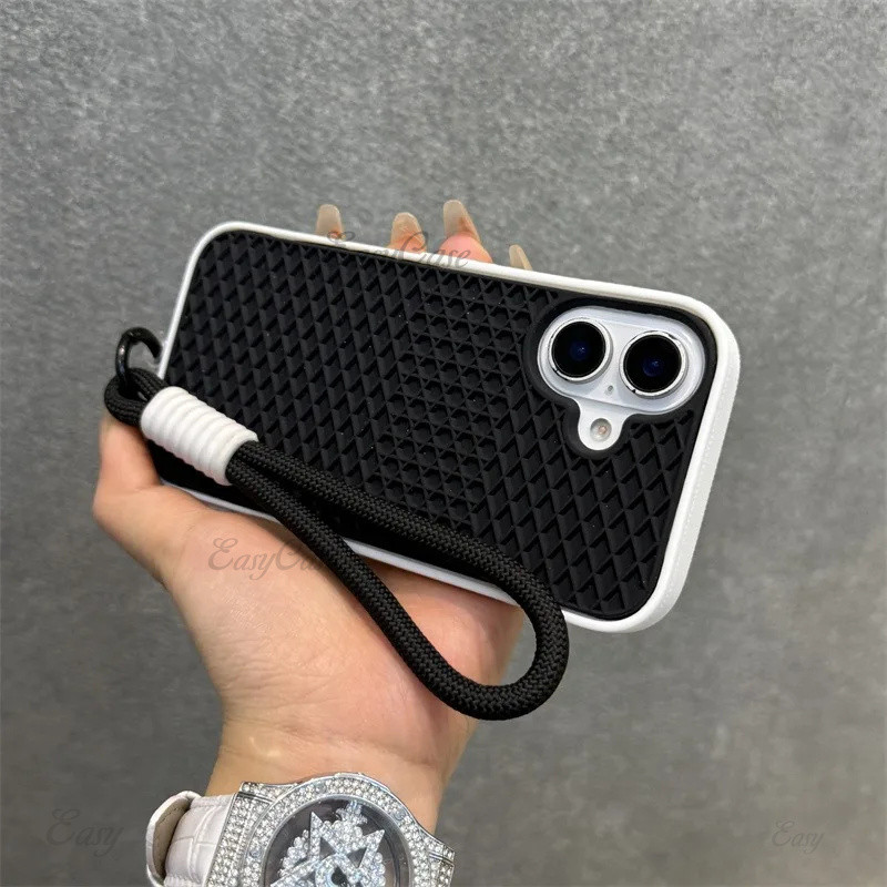 Único Waffle Sapato Caso Para iPhone 16 11 12 13 14 15 Pro Max X Xr Xs 7 8 Plus Silicone Macio Cordão Pulseira Capa