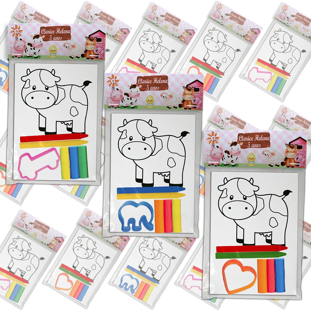 Unidades Personalizável De Kit Colorir Premium Festa Infantil Comemoração Tema Fazendinha
