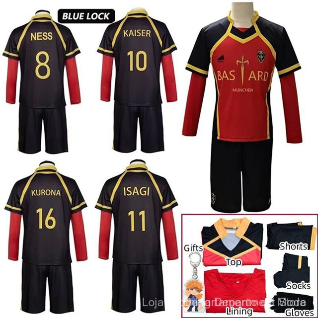Uniforme de Cosplay de Anime Blue Lock Bastard Munique Yoichi Isagi Red Ness Kaiser Kurona Camisa de Futebol JHWA para H