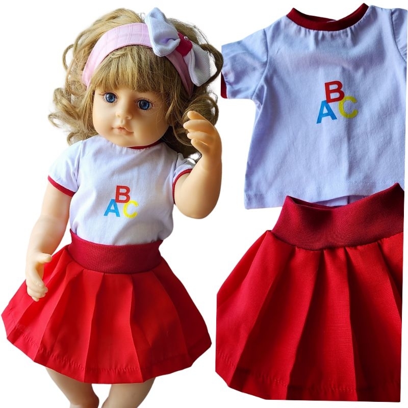 Uniforme Escolar Para Boneca Reborn Kit Colegial Saia E Blusa
